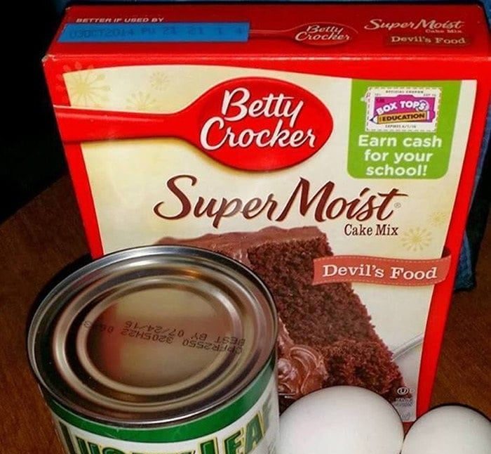 You can also choose blueberry pie filling and the cake comes out blue or chocolate cake mix and the cake comes out, well, chocolate.